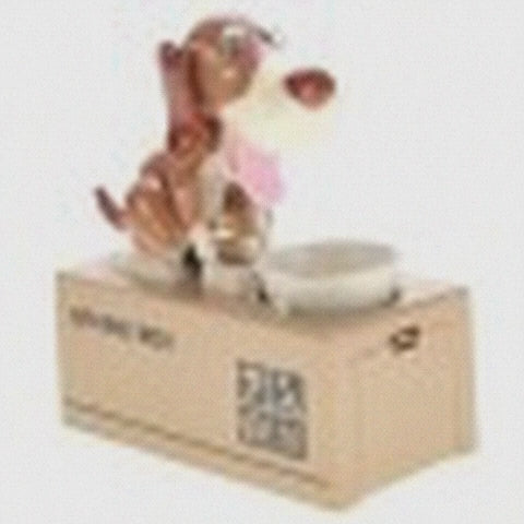 Give a hungry hound a coin! This adorable puppy is happy to save your coins in his savings box! Place a coin onto the tray, and watch as it happily munches away! The consumed coins are stored in the savings box -- what a fun way to save! (Powered by 2 x AA batteries -- not included).