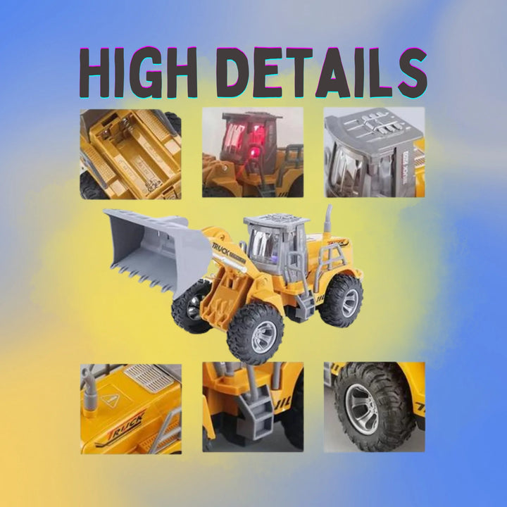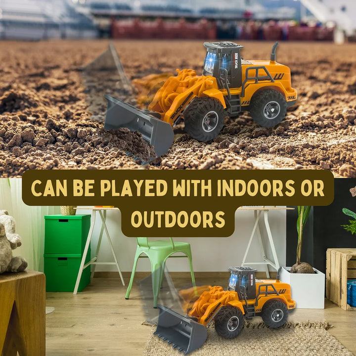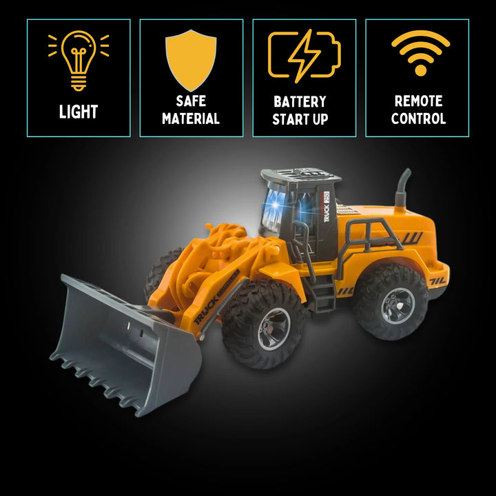 1:30 scale remote control loader construction truck with 5 channels. Fun little remote control that any child would love. Comes with 5 channels so you can control the main driving functions along with the front of the truck. Can be played with indoors or outdoors. The truck can pick up small rocks or dirt. Endless hours of fun!