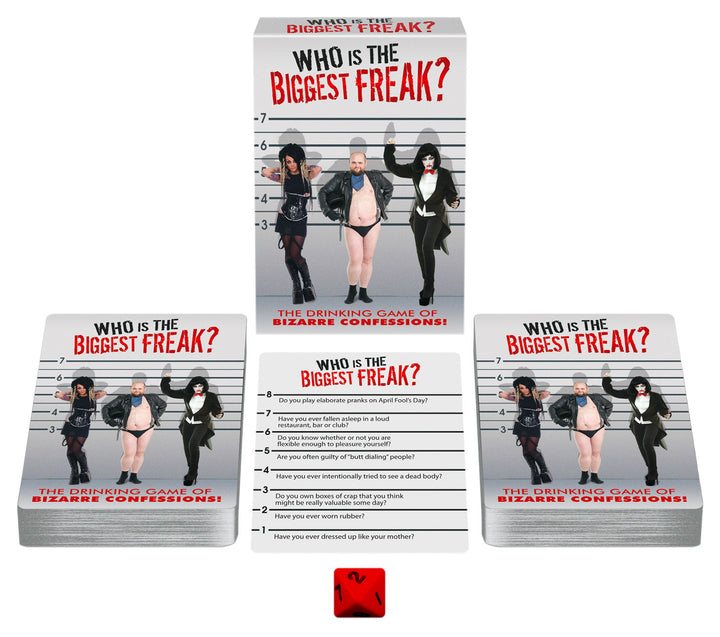 The drinking game of bizarre confessions! Players answer questions about crazy things they have done in order to determine which one of them is the BIGGEST FREAK! Whomever has done the crazy action, drinks! Over 550 outrageous questions!