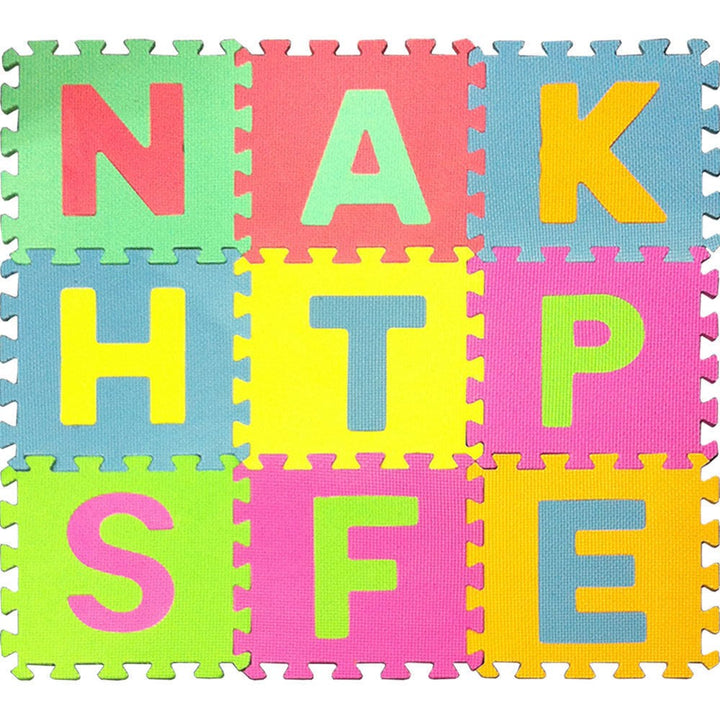 Includes 36 interlocking tiles (26 letters A–Z and numbers 0–9)