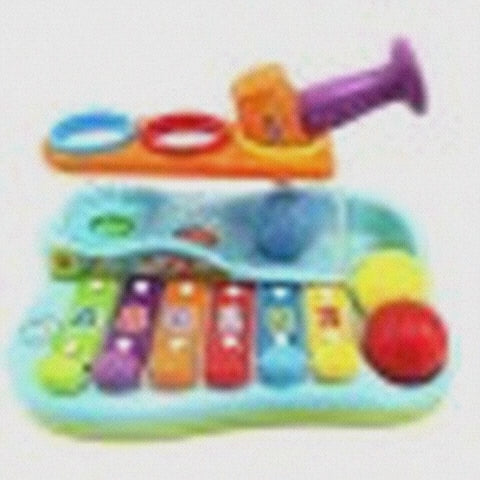This colorful xylophone piano pounding bench is fun to pound! Place the 3 balls on top of the pounding bench. Use the hammer to pound and tap the balls. Once a ball drops, it will strike one one of the xylophone keys. There are 6 xylophone keys on this piano. Tap or slide across 6 xylophone keys to create pleasant scale of notes. The pounding bench measures 10" x 7" x 5". Includes hammer and 3 color balls. Your kids will love pounding the balls and striking the piano keys!