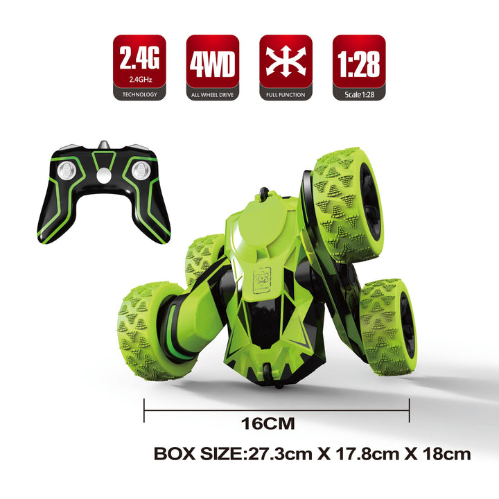 Remote control double sided stunt car. 360 degrees flips and turns with full driving functions and ability to pass obstacles