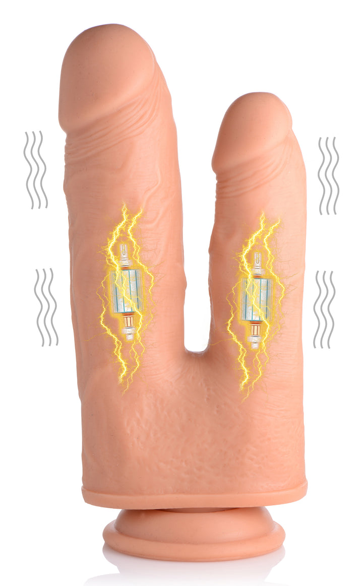 Take a double shot of dong with this turbo powered dildo! Crafted with premium ingredients and packed with features for a gratifying combination of fill, vibration, and rotation. This Double Shot is made for lovers of double penetration - enjoy a big dong and small dong in both your holes at once, with ease!