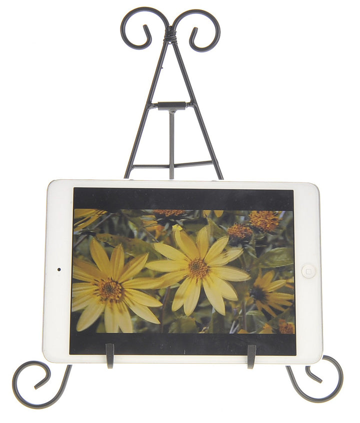The sturdy stand is built to last long and is able to hold all sorts of items such as, cook books, plates, pictures. It has a unique curvy style that will stand out in your home or your office. It is a excellent way to display your items that hold value to you or be able to display those precious pictures and let everyone see how beautiful they are with the iron stand.
