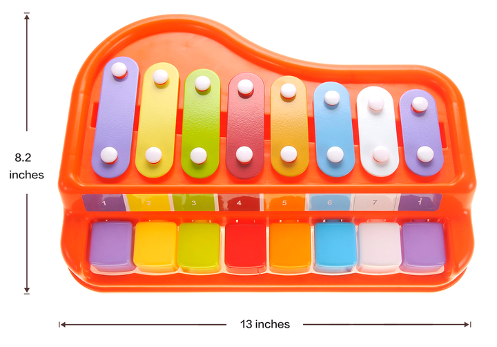 Give your child the sound of musical tunes with this bright and colorful 2 in 1 xylophone and piano set. Let them explore the wonders of musical notes to encourage them to be music talents in the future. The xylophone creates a beautiful ring to the ears and kids can actually play real songs. Set also comes with a musical piano keyboard for even more musical fun. Teach them notes and let them learn how music can impact their lives.