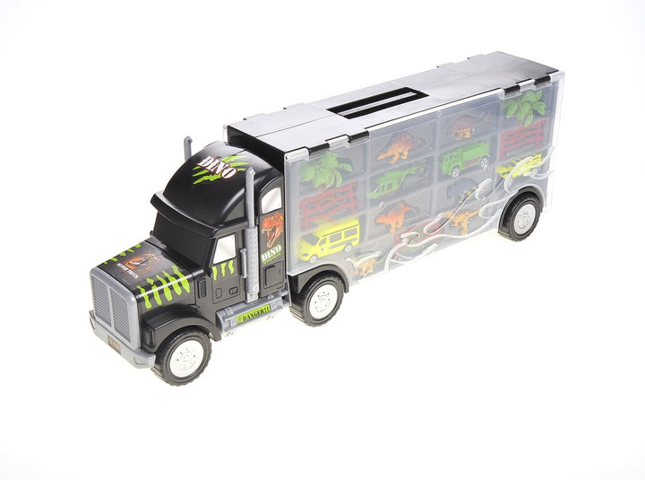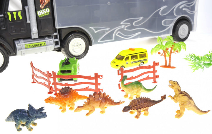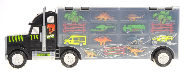 22" Transport Dinosaurs Car Carrier Truck Toy Includes Dinosaur Toys, Cars and Helicopter