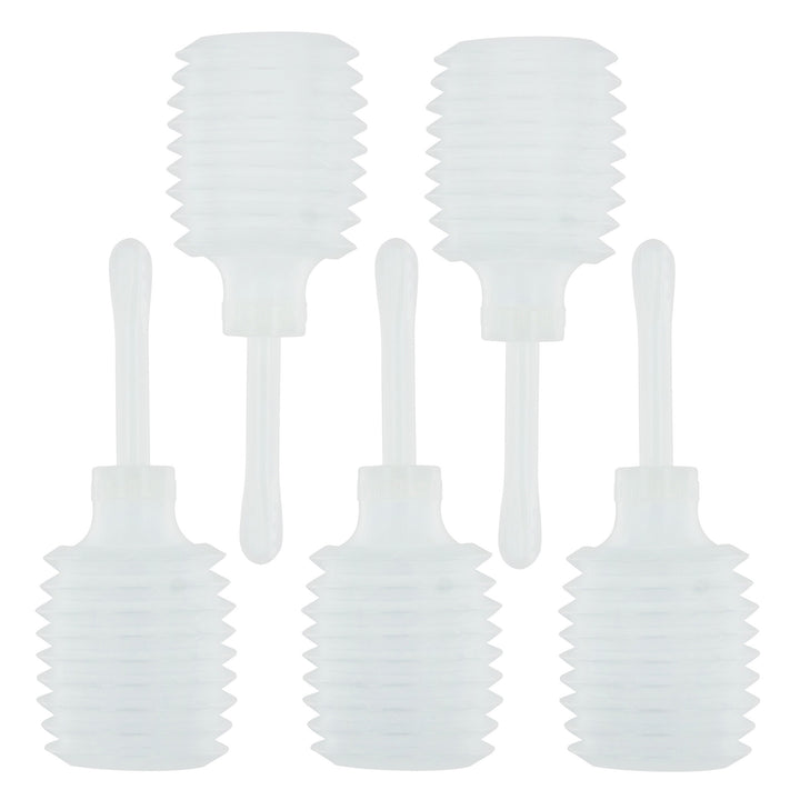 These one time use douche or enema bulbs are the ultimate in simple, hygienic cleansing. No need to worry about cross-contamination. These simple, accordion style pumps are one time use, so you can easily dispose of them. No clean up or mess to worry about. There are 5 total, so you can stay stocked up and ready for deep, comfortable, effective cleansing any time.