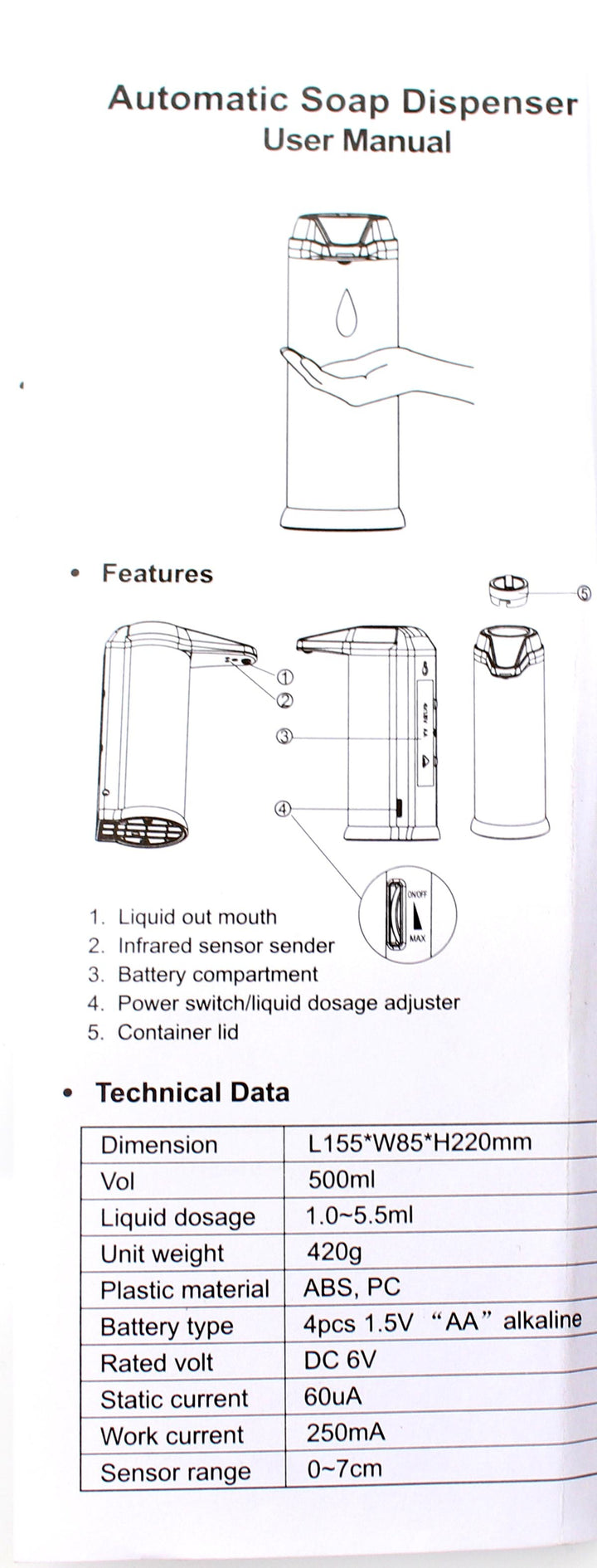 Designed with a refill lid, LED indicator light, and liquid outlet port, it’s easy to operate and maintain. Just insert 4 AA batteries (not included), fill with your favorite liquid soap or lotion (avoid exfoliating or beaded types), and enjoy a hands-free experience.
