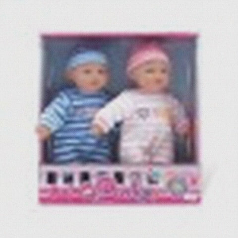 Two adorable baby boy and baby girl twin dolls for double the fun! Each doll comes with their own little outfit to play with and have a great time with kids!