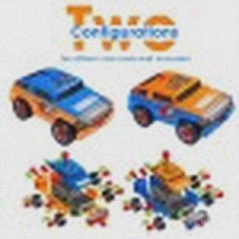 35 piece set Includes 4 tires, 9 screws, 17 car modifications parts and 4 tool parts (2 AA batteries).