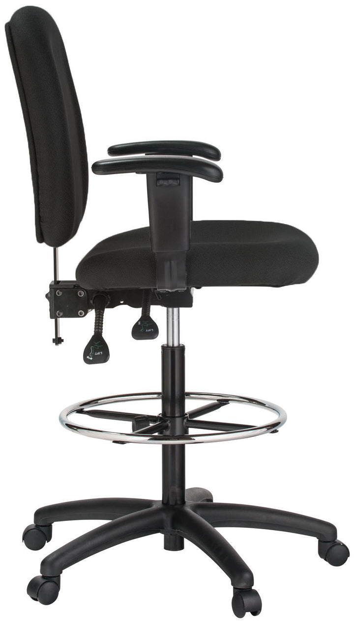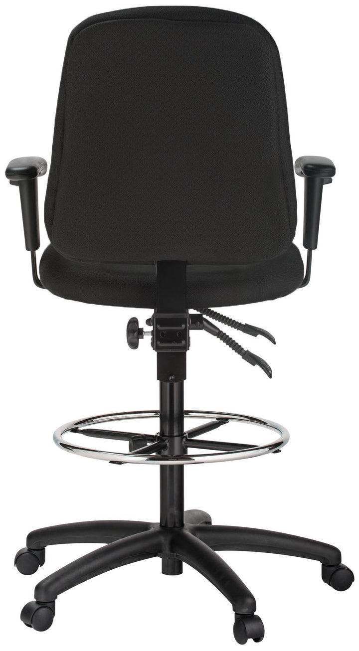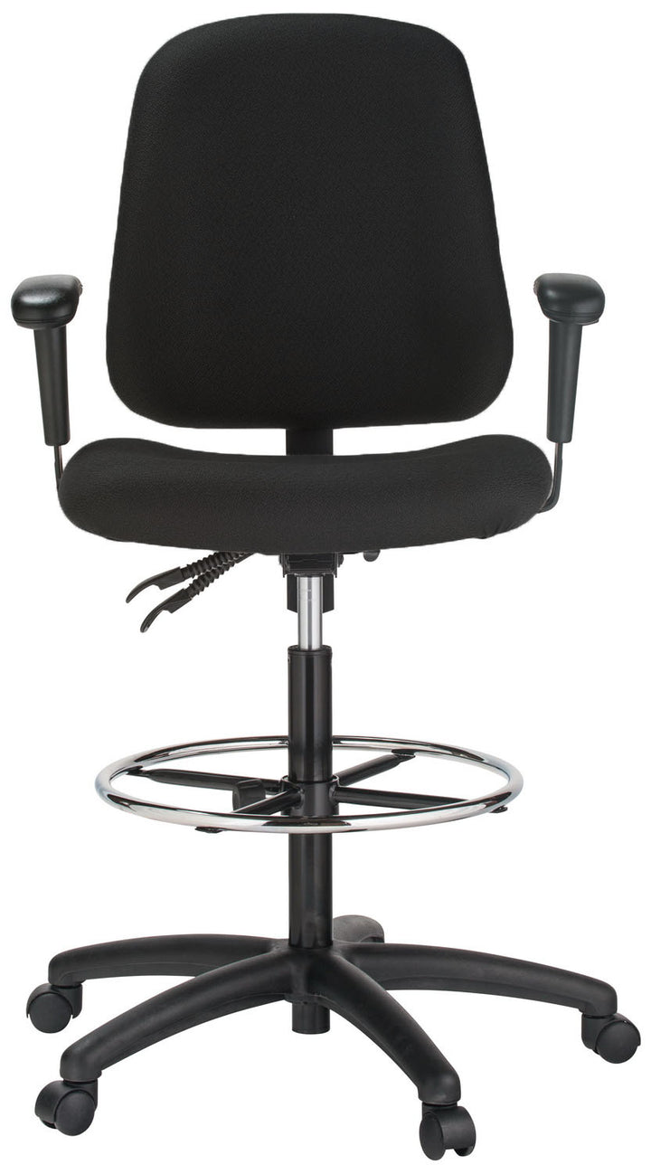 Work comfortably and efficiently with the Black Fabric Drafting Chair with Arms, designed to provide ergonomic support and durable performance. Ideal for offices, studios, and creative workstations, this chair combines comfort, adjustability, and style for long hours of use.