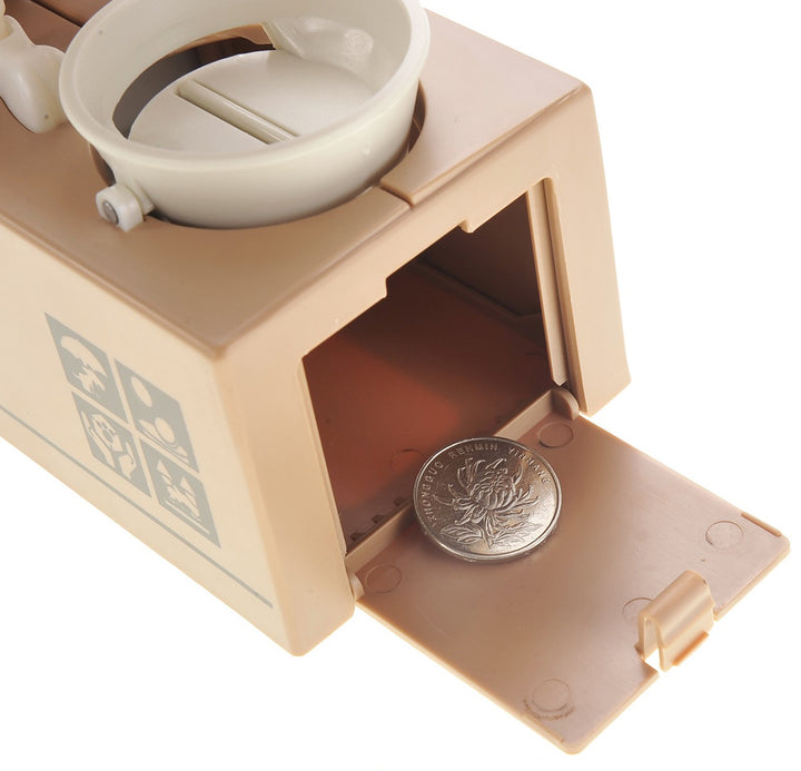 Give a hungry hound a coin! This adorable puppy is happy to save your coins in his savings box! Place a coin onto the tray, and watch as it happily munches away! The consumed coins are stored in the savings box -- what a fun way to save! (Powered by 2 x AA batteries -- not included).