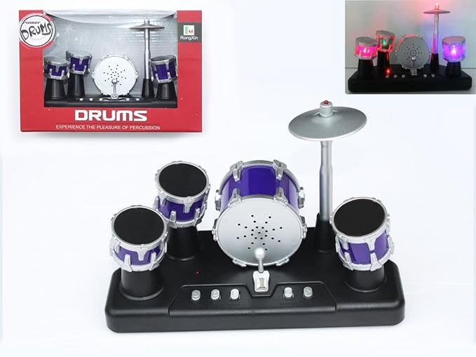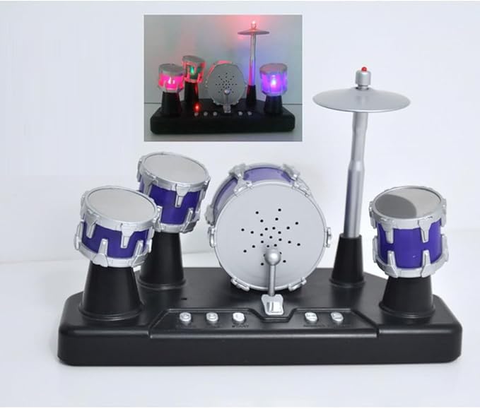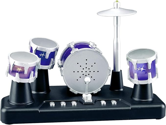 Make a beat anywhere with the Electronic Mini Drum set! Tap on the drums to play the respective sounds for each piece. Mix and match beats to record and create your own tune. Drum heads lights up as you tap them. Also has a foot pedal for you to hit as well!