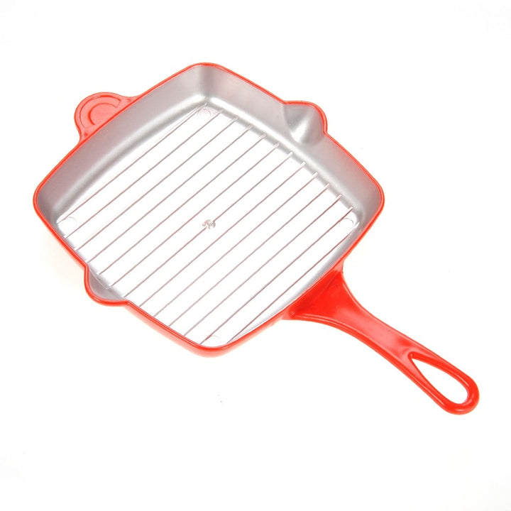This wonderful kitchen cooking set comes with 4 different pots and pans, each with different shapes and sizes. Includes pot with lid, baking pan with lid, grill pan, skillet, and mitt.