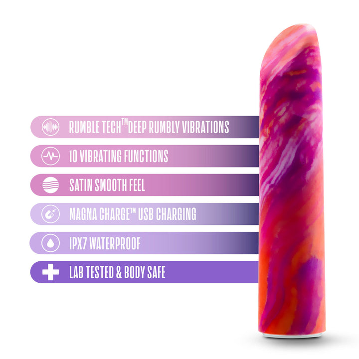 Are you ready for your newest addiction? The Limited Addiction Fiery Power Vibe is a colorful and sleek vibrator that delivers 10 deep, rumbly vibrations with the superior Rumble Tech motor! Cycle through 5 powerful speeds and 5 unique and thoughtfully curated patterns using the two button design to find your perfect pleasure preference. IPX7 submersible waterproof for bath and shower play and USB magnetic rechargeable, the Fiery Power Vibe is easy to clean and even easier to use. It has a smooth, sensual satin feel and it contains no phthalates, paraffins, latex, or fragrance.