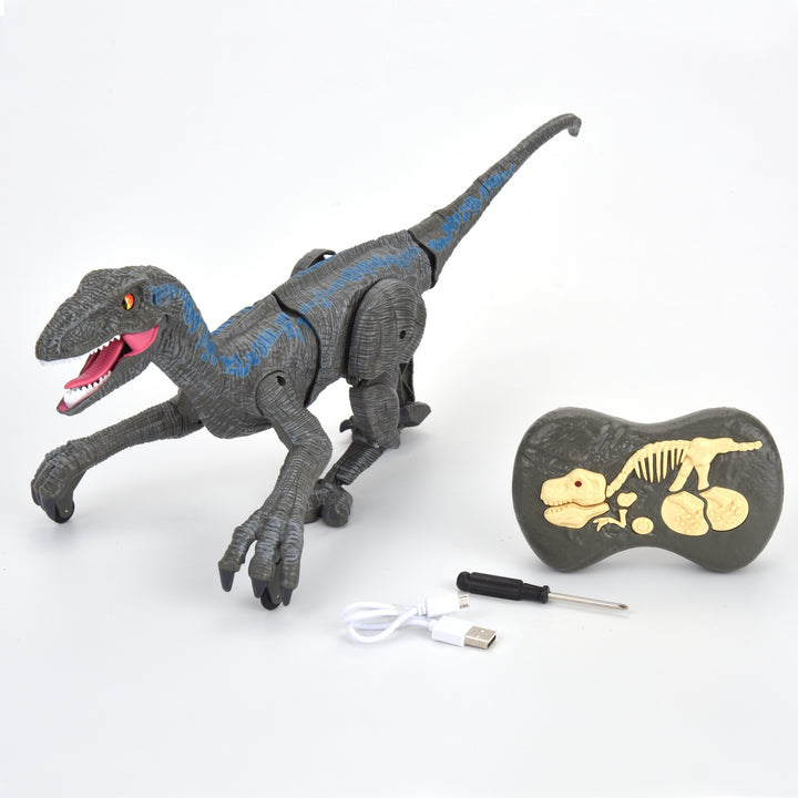R/C Dino Velociraptor w/3D Eye ED Light, Roaring & Shaking Head/Tail Gray