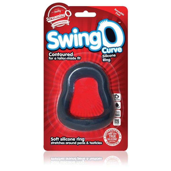 The SwingO Curve is a uniquely versatile cock ring with a reversible design for two distinct sensations. Wear it forward or backward for a pleasantly snug feel and a firm fit and see what position feels best for your unique shape. The SwingO Curves custom contour is designed to accommodate his undercarriage with a strategically bendable shape and stretchy True Silicone construction that ensures a secure wear and a body-safe experience. Simply stretch the SwingO Curve around the penis and testicles with the ring at the base of the body for optimal pleasure and dont forget to play with placement to see what he likes the most!