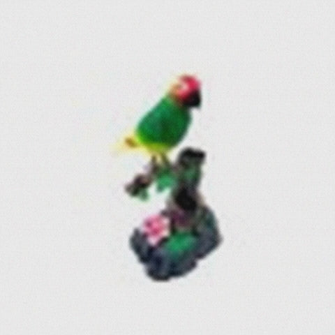 The Talking Parrot repeats whatever you say! Ever wanted a parrot as a pet? Well, here's your chance. Enjoy the back and forth banter with a toy parrot that repeats what you say twice. Get within effective recording range (3 feet) and the Sound Sensor Technology starts recording at the sound of your voice. Once the hidden mic starts recording, the base will light up. Aside from the repeated words, the animated parrot also spews out random words and phrases such as "hello", "I see you", and "I love you". It also whistles and tweeps without warning, and don't be surprised when it moves from side to side, opens its beak, and flaps its wings. Use the on/off switch and have a friendly conversation at a moment's notice. Sit the animated toy on a desktop and take advantage of the pen holder.